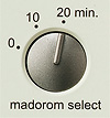 お目ざめまでの時間とまどろみ音は、本体上面の「マドロームセレクトスイッチ」で0分、10分、20分から選択できます。