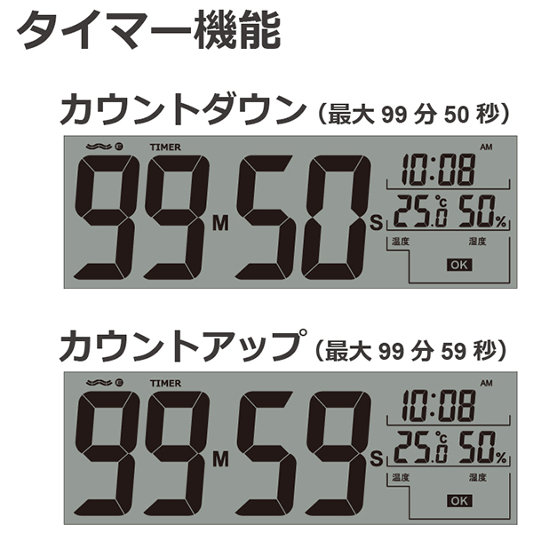 温湿度表示(温度測定範囲:0℃~40℃、測定精度:±2℃ 湿度測定範囲:25%RH~85%RH、測定精度:±8%RH(25℃)